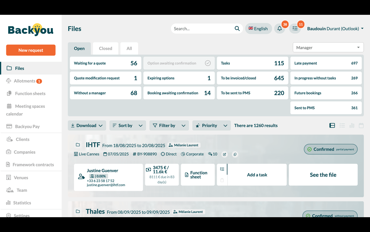 Backyou : All-in-one solution for hoteliers to manage Groups & Events. Easy to use and packed with powerful features, our solution connects effortlessly with Apaleo, helping your teams save time and convert group requests more efficiently.